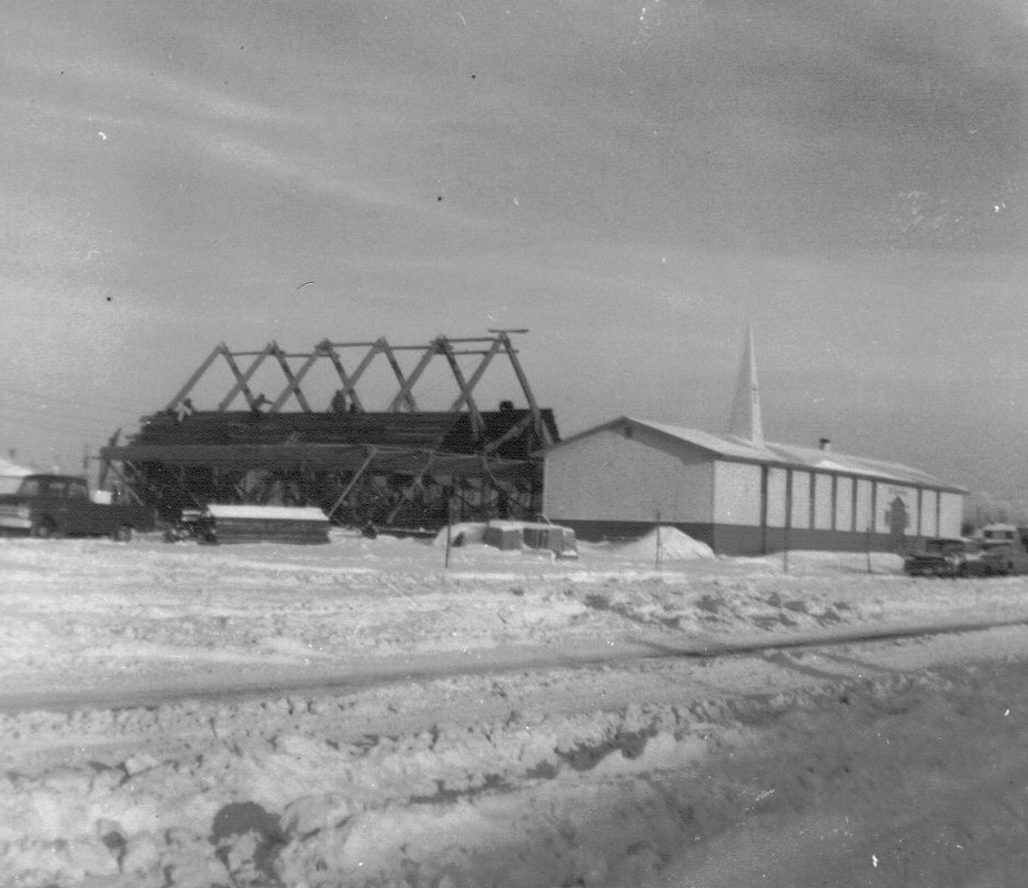 In 1963 a portable building was moved to the present site on Sherwood Drive where services were held for adults and Sunday school was held in the old building on Edward St.