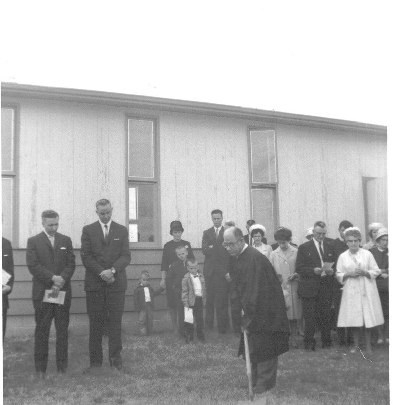 After many Fun Fairs, Teas, Fall Suppers etc, to raise money a new building was proposed. On September 4, 1966 Harry Stone, among others performed the sod turning for the new sanctuary.